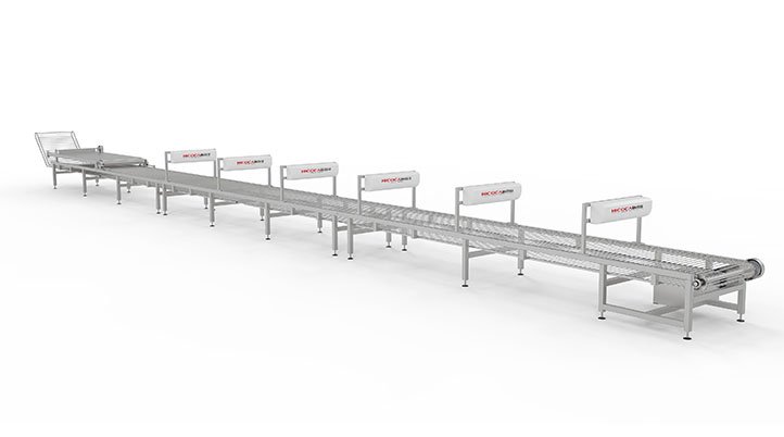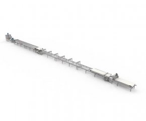-PLC系統(tǒng)控制熟化成片的河粉經開片下架到風冷定型輸送機進行粉皮冷卻。