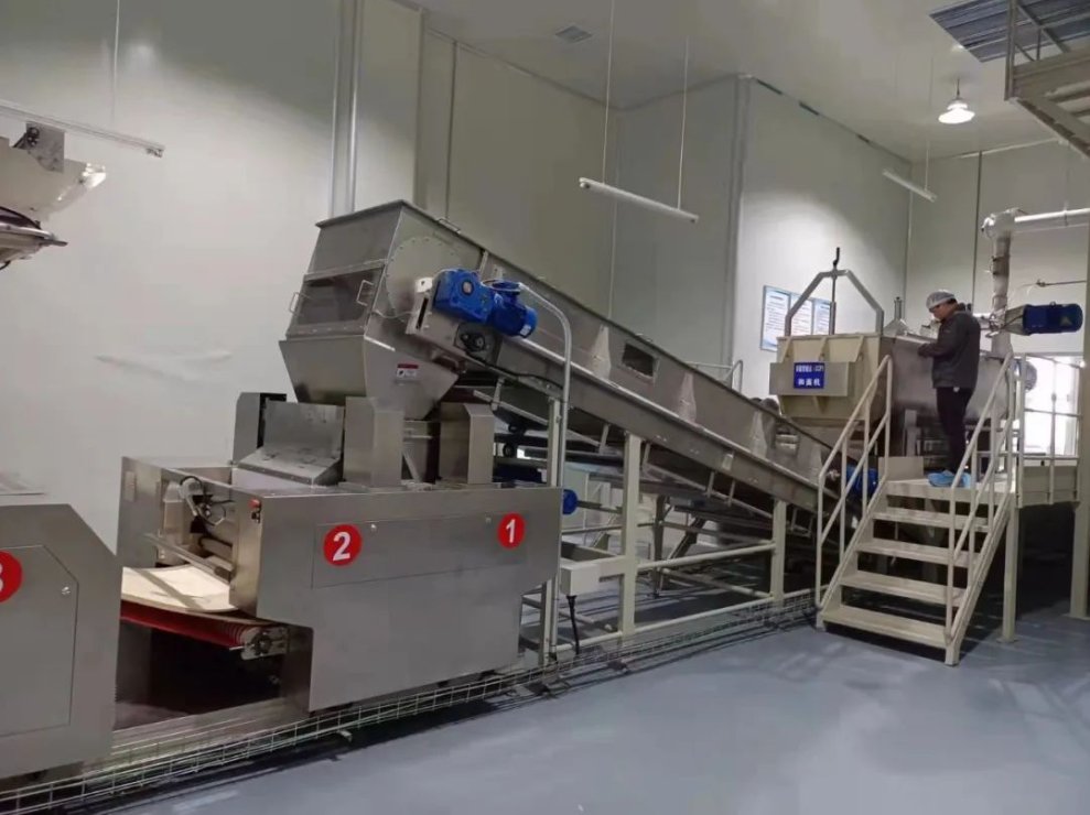 為實現企業的轉型升級,讓老國企換發新生機,民天公司按照集團黨委“民天面粉向民天食品”轉型的發展戰略,經過多方論斷,并結合公司實際,確定了面粉向掛面轉型的發展方向。2022年,民天公司投資1500余萬元,利用軍民融合項目在長清金德利產業園建設全自動掛面生產線,并于2023年5月正式投產。