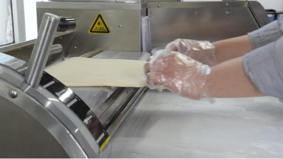 它并非一次性強力壓面,而是模仿人手“揉”、“揣”、“醒”的節奏。通過多道、低速、漸進的碾壓程序,讓水分與面粉有充分的時間融合,讓面筋蛋白得以從容舒展和鏈接。這正是對“充分構建面筋網絡”這一因果的遵循。