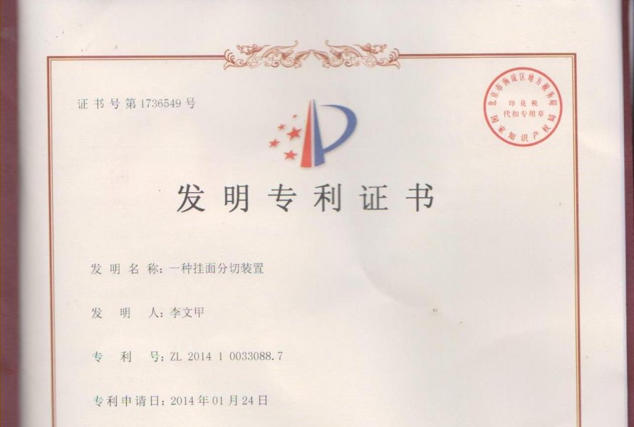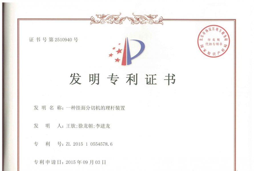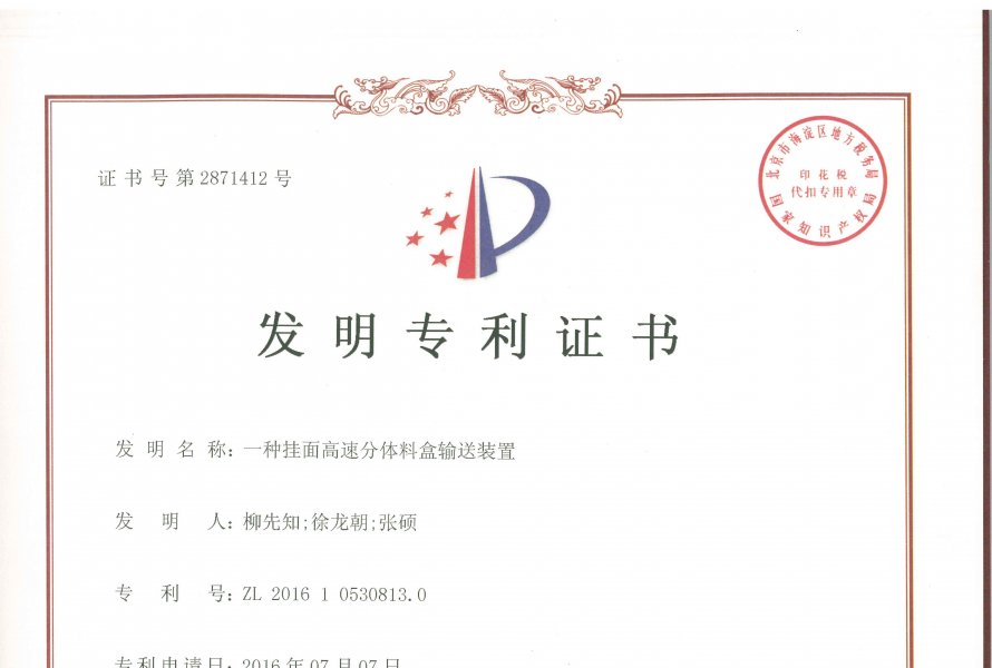 雙層切面機研發成功;2500g紙包裝機試制成功;機械手自動供料系統試制成功。